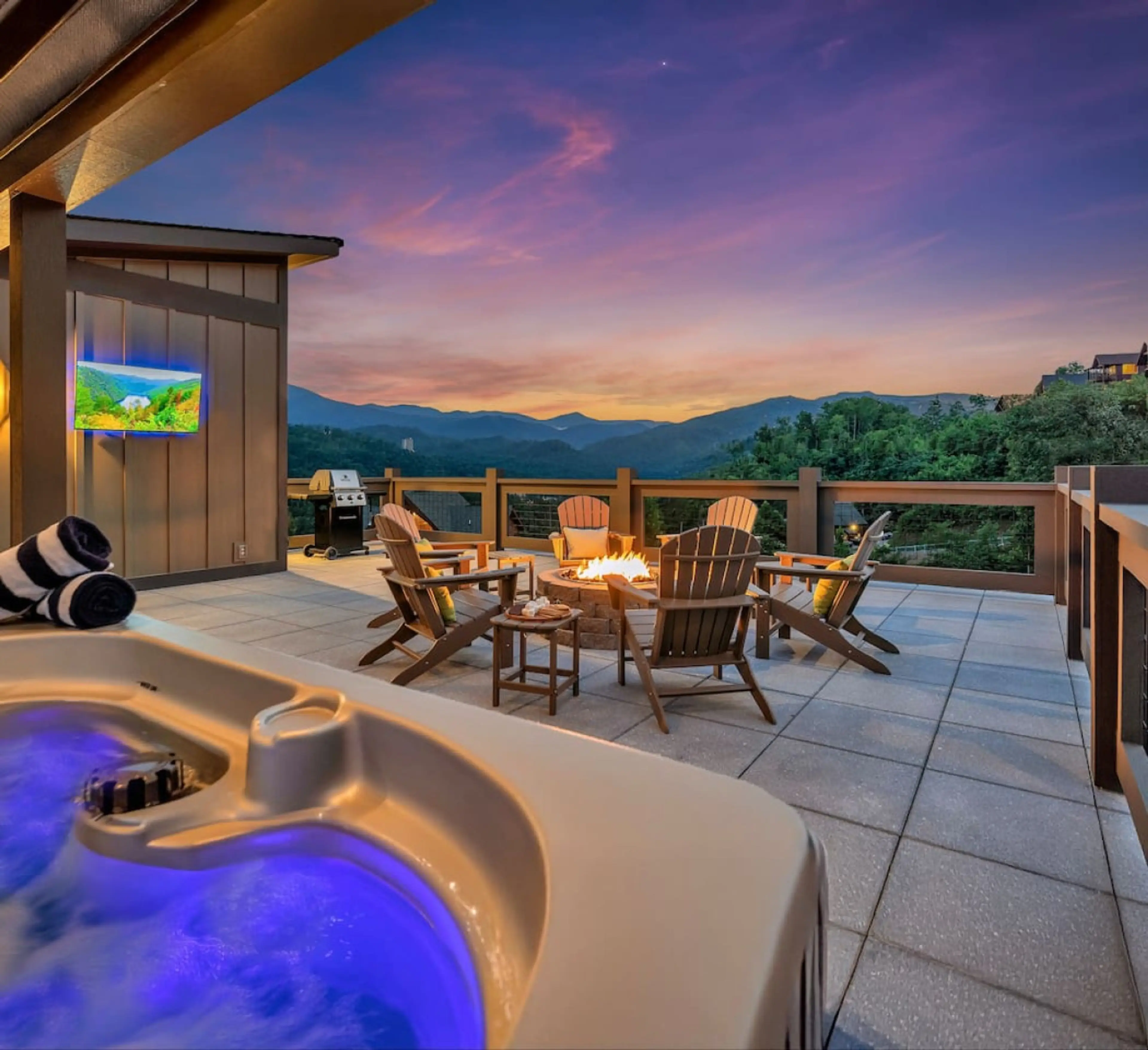 Now decorated for Christmas! Welcome to Bear Necessities 🐻 Our OWNER MANAGED cabin built in 2025! LOCATION less than 1 mile from downtown Gatlinburg, it features a unique rooftop deck with high end hot tub, grill, rolling bar, custom fire pit, and views of Anakeesta / downtown Gatlinburg. Inside: ...